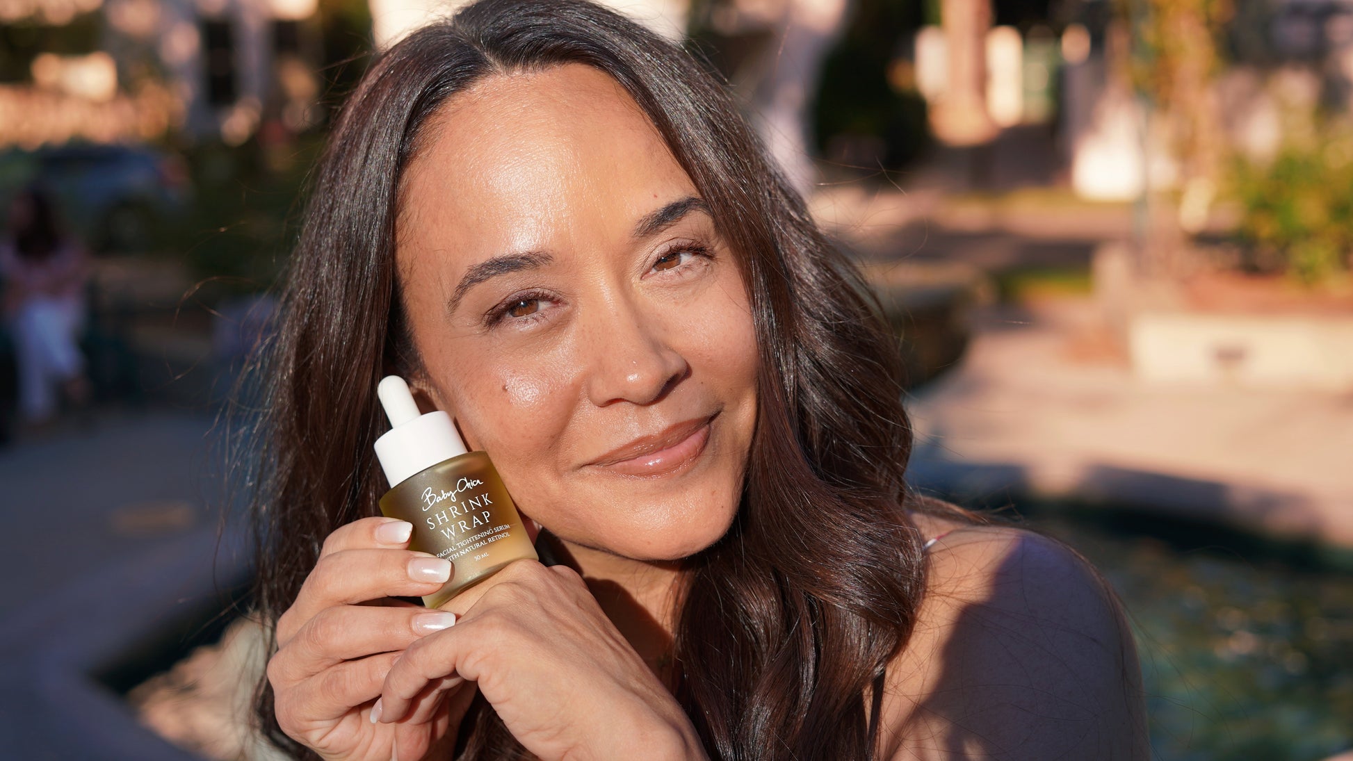 Shrink Wrap’s powerhouse blend of bakuchiol, bioavailable silica, and botanical oils that works synergystically and naturally to help your skin feel firmer, more elastic, and smoother—like a natural lift you can see and feel.